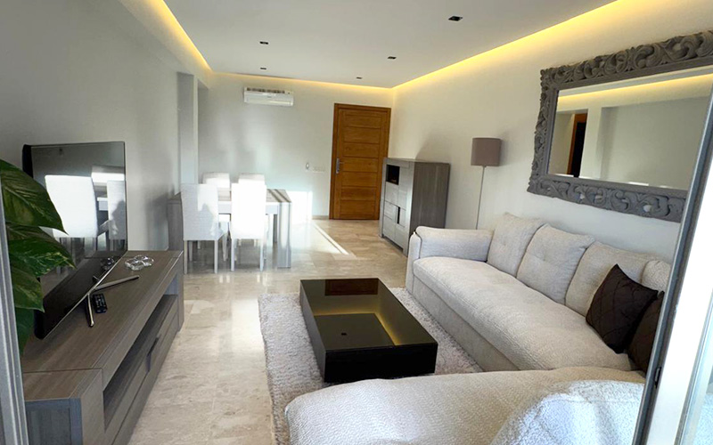 Tanger, Malabata Hills. Découvrez ce superbe appartement meublé, situé dans la prestigieuse résidence Malabata Hills, offrant un cadre de vie moderne, raffiné et sécurisé.