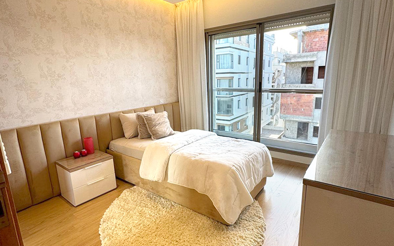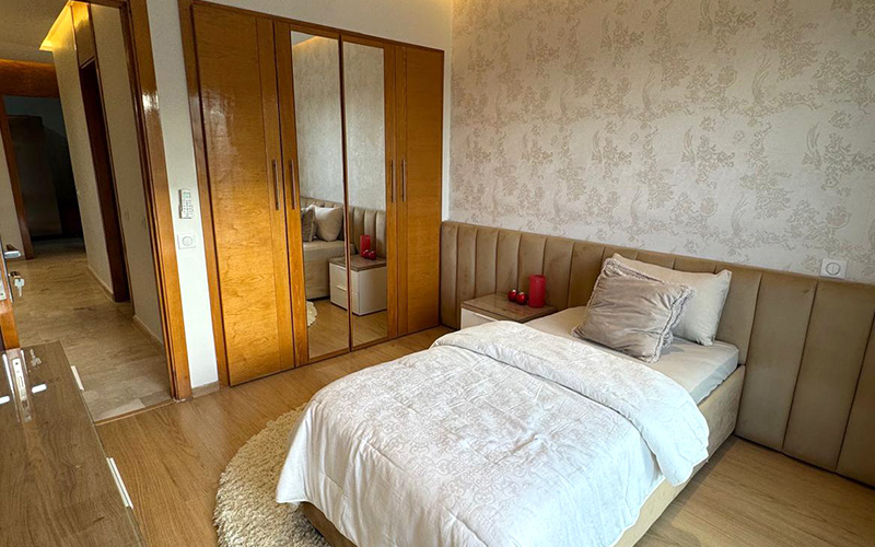 D’une superficie généreuse, l’appartement se compose de 3 chambres spacieuses, 2 salles de bain élégantes, un salon lumineux avec accès à un balcon, et une cuisine moderne entièrement équipée. Chaque espace a été pensé pour allier confort et fonctionnalité, avec une décoration soignée et du mobilier de qualité.