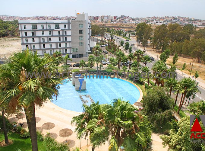 Tanger, Iberia, le quartier le plus demandé de la ville, à louer un spacieux appartement meublé, doté d’une vue panoramique de sa terrasse. Le luxueux appartement se compose de : 2 chambres, salon, cuisine et 2 salles de bain. Place au garage.